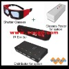 3D Digital Theater System Solution (1 Glasses+1 IR emitter)with Latest LCD Shutter Technology: 3D Shutter Glasses Adopts fast response and high transmittance LCD, it supports higher than 240fps and guarantee image brightness: *Brightest 3D solution in current market LCD lenses adopts the latest American LCD technology and Taiwanese advanced LCD process, well surpass traditional Pei-Cell technology they are leading in technology while greatly reduce manufacturing cost *Solid and durable: Durable and flexible, replaceable battery and replaceable earpieces greatly increase life cycles, therefore reduce the maintaining cost of 3D digital cinema *Low power consumption: Adopt low power consumption chips and power saving circuit layout,our glasses enjoy averagely 350 hours continuously working and one year standby lifespan *Anti-theft and waterproof: Fully sealed and washable by ultrasonic washer in normal temperature, it have build-in EAS anti-theft tag to prevent the 3D glasses from lost *Extended receiving angle: Utilize extended IR receiving window which made of material with high filter capacity, reduce environmental interference and ensure all-round receiving without black hole *Auto on/off: Utilize intelligent auto on/off to extend battery lifespan, the 3D glasses waken automatically when receiving IR signal, and go into power saving mode in five minutes after IR signal cut off *Low power detection: The active 3D glasses with built-in power detection function, its LCD lenses will flash once every second when the 3D glasses are in low power mode to indicate user that the battery need to be replaced Theater IR EMITTER SPEC: *The IR emitter is use to transmit frame sync signal to 3D active glasses by IR *Compact and powerful high-tech product *One emitter to support a theater up to250 seats *Plug in and use, no need setup debug *Enhanced heat dispensation *Auxiliary laser orientation *Fast installation *Used for small or large scale theaters Glasses Tester(for option): *Handy unit using by cinema technician to verify the performance of the 3D glasses *Emits low rate IR signal to activate the 3D glasses and the lenses of the glasses will blink in low rate *Power supply: AA battery x 3 *IR wavelength: 940Nm *Dimension: 134 x 70 x 25mm DistributorSpec(for option): 3D digital cinema distribution module is a multifunctional converting unit This unit plugs into the digital projector and gain frame synchronizing signal via GPIO (DB-37) port and split into four-way DB-9 output it also support the extension of Distribution module by a DIN-3 cable, thus greatly simplify cinema wiring Each port has diagnostic indicating LED to help cinema technician to diagnose and identify system error